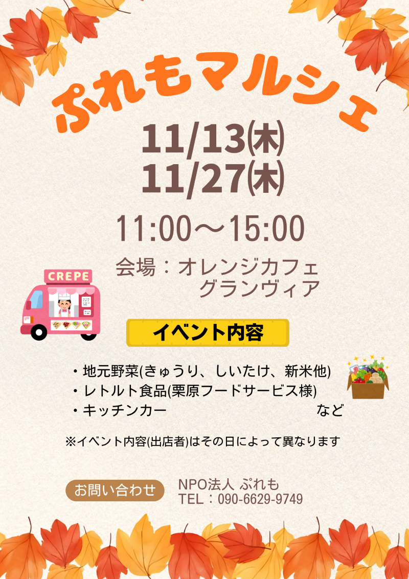 初めましてNPO法人ぷれもです! NPO法人ぷれもは宮城県北部に位置する登米市迫町で活動しているNPO法人です。 【ぷれも】とはラテン語で『寄り添う』という意味です♪ 私たちは地域の皆様の憩いの場を作りたいという思いで、 旧ホテルニューグランヴィアのチャペルを改築し常設のオレンジカフェを立ち上げました。 みなさまが気軽に立ち寄れる場を目指して活動を進めて行きます。 ホームページ運営費 公益財団法人ユニベール財団特定活動助成