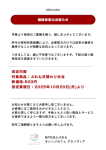 当店では、昨今の原材料費高騰に対し、従来の価格を維持するため、
