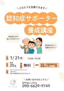 認知症サポーター養成講座受講者募集中!!